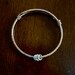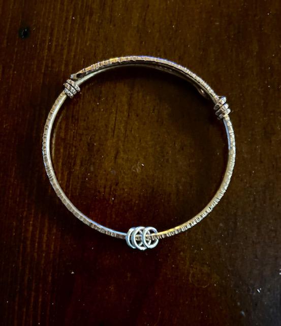 Beautiful and unusual bangle. It goes so well with my silver one in the same style. Both bangles represent my daughters, their children and therefore my grandchildren and I wear them everyday. I also received the bangle a week earlier than the expected date.